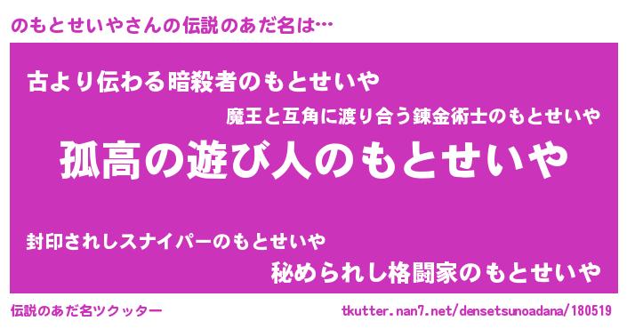 | 胡散臭い通販商品みたいなあだ名 | 『信頼と実績のペンダント…その名も「のもとせいや」』 |