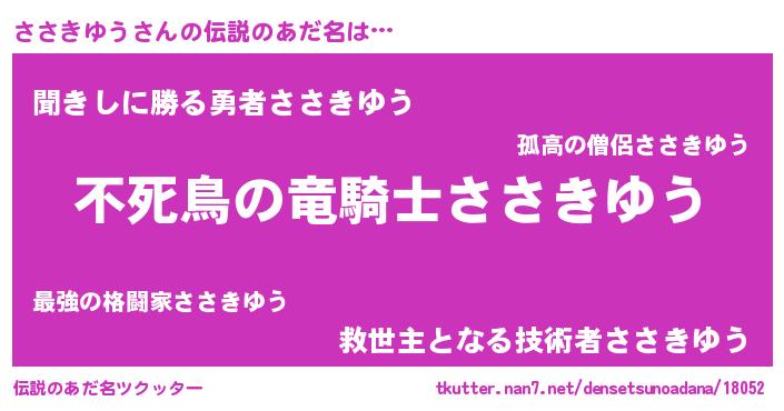 | ヒーロー風カッコイイあだ名 | 『仮面ササダー』『超時空戦士ササキユウ』 |
