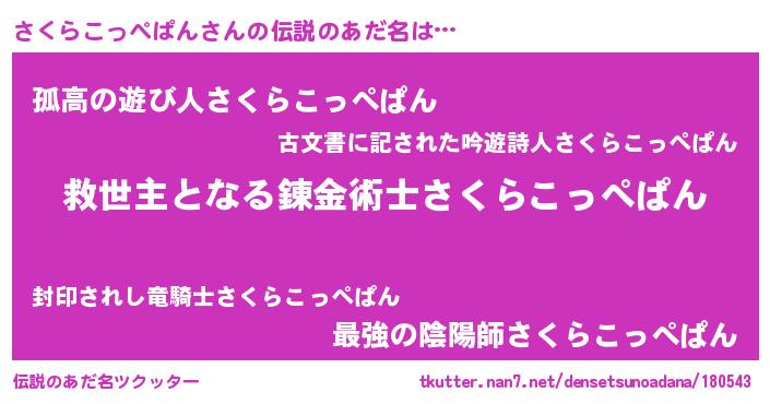 | 欧米人風あだ名 | 『ダニエルさくらこっぺぱん』 |