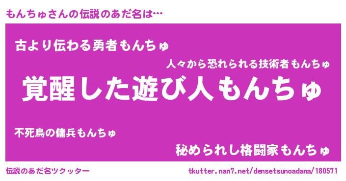 | ヒーロー風カッコイイあだ名 | 『天弓騎士モン』『ネオモンチュ』 |