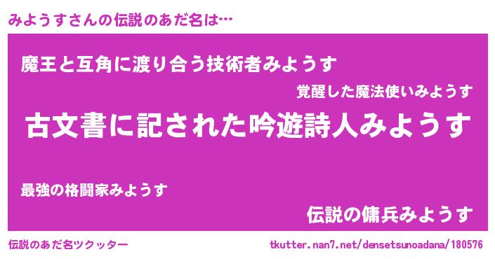 | ヘコむあだ名 | 『みようす(小並感)』『みよにー』 |