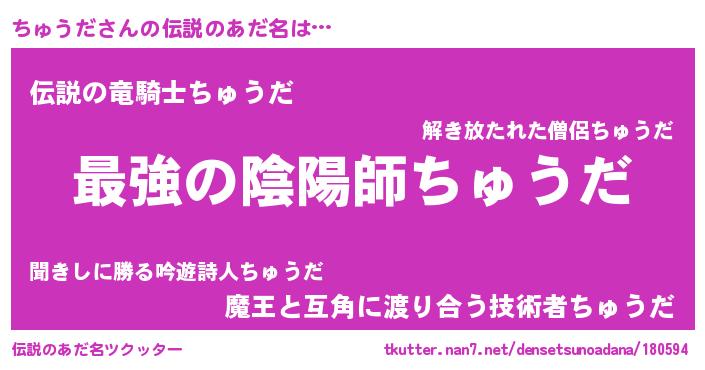 | ヒーロー風カッコイイあだ名 | 『最強戦士チュウダ』『スーパーチュウダ』 |