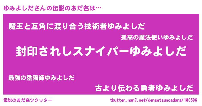 | ヒーロー風カッコイイあだ名 | 『スーパーユミヨシダ』『ネオユミヨシダ』 |