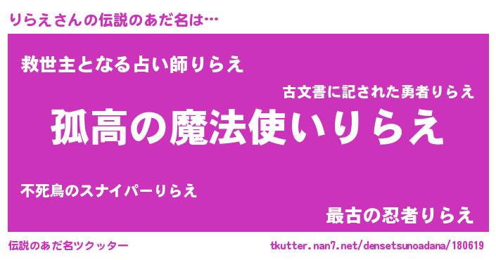 | 男性向けラノベタイトル風あだ名 | 『緋弾のリラエ』『魔法科高校のりらえ』 |