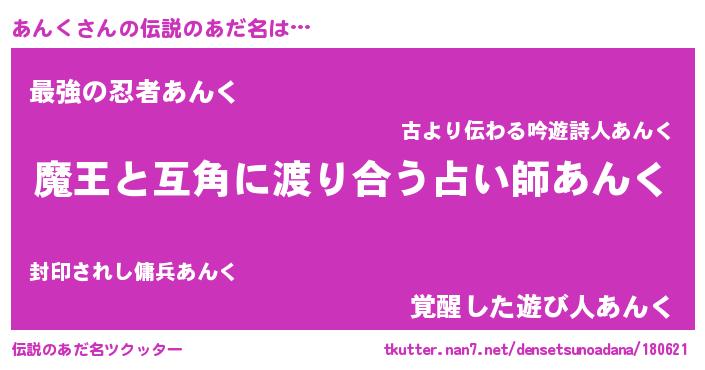 | 女子向けラノベタイトル風あだ名 | 『あんく恋絵巻』『あんくの雑貨屋さん』 |