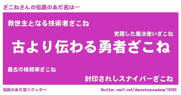 意味不明あだ名 | 『永久保存ざこね』『自称ざこね』 |