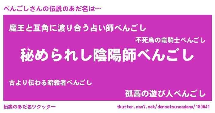 | ヒーロー風カッコイイあだ名 | 『ウルトラべんごしマン』『暗黒騎士ベン』 |