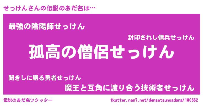 | ヒーロー風カッコイイあだ名 | 『黄金騎士セッ』『最強戦士セッケン』 |