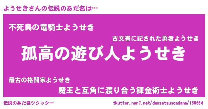 | 女子向けラノベタイトル風あだ名 | 『ようせきは平凡を望む』 |