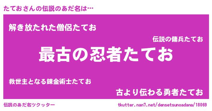 | ファンタジー風あだ名 | 『エターナルタテオー』『ヴァルタテーナ』 |