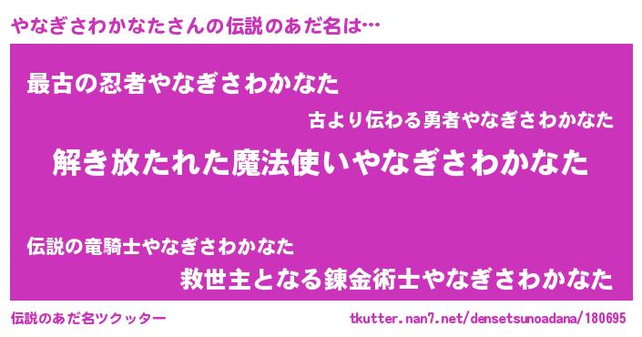 | 意味不明あだ名 | 『自称やなぎさわかなた』 |