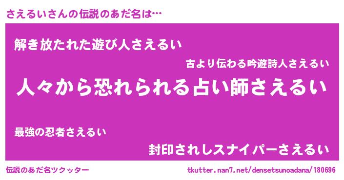 | ピコ太郎風あだ名 | 『ササ太郎』『サエ五郎』『サコ八郎』 |