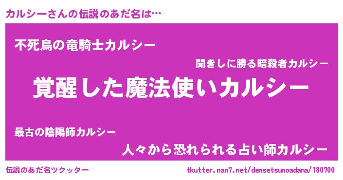 | 男性向けラノベタイトル風あだ名 | 『カルシーの嫁は女の子じゃないと思った?』 |