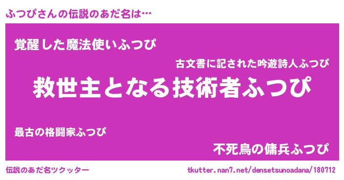 | ポケモン風あだ名 | 『フックウザ』『ヒフツピ』 |