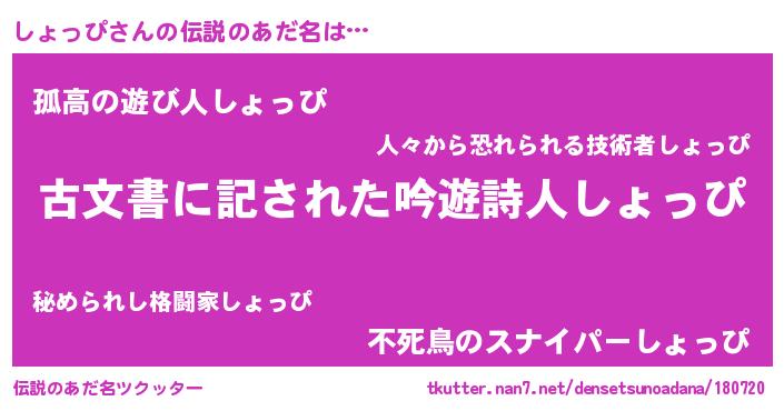 | 意味不明あだ名 | 『永久保存しょっぴ』『ペロリンしょっぴ』 |