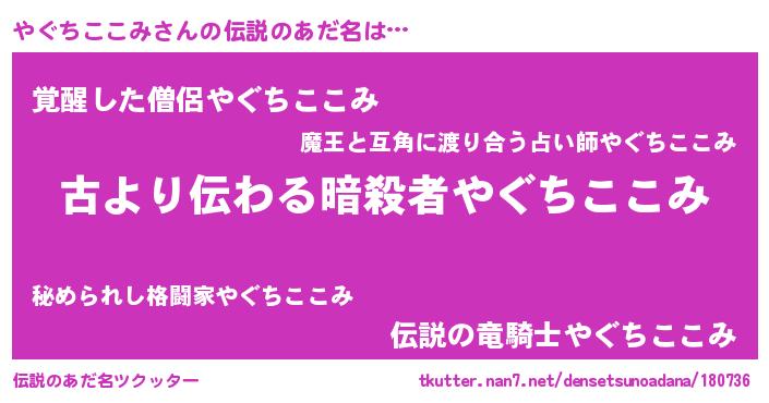 | ヒーロー風カッコイイあだ名 | 『ネオヤグチココミ』『銀牙騎士ヤグ』 |