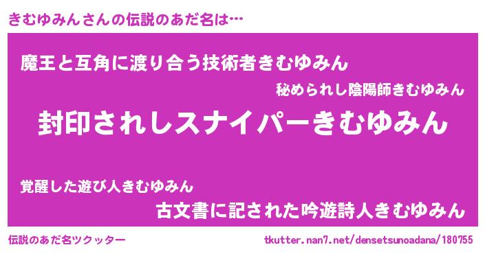 | 胡散臭い通販商品みたいなあだ名 | 『億万長者になれる霊験あらたかなお札…その名も「きむゆみん」』 |
