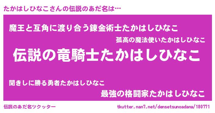 | 女子向けラノベタイトル風あだ名 | 『(仮)たかはしひなこのやんごとなき事情』 |
