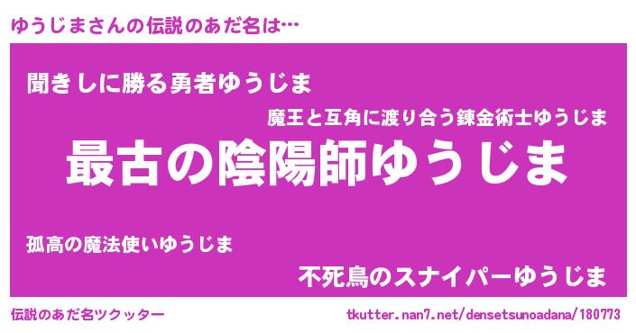 | ヒーロー風カッコイイあだ名 | 『仮面ユウダー』『ウルトラゆうじまマン』 |