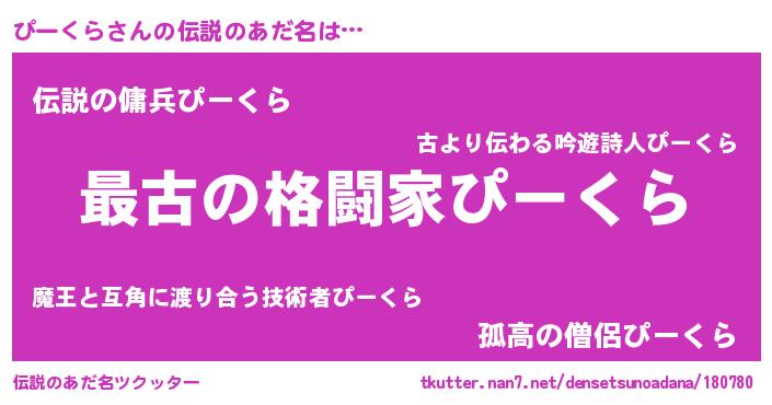 | 意味不明あだ名 | 『ぴーくらフォーエバー』『自称ぴーくら』 |