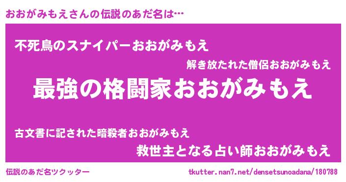| ファンタジー風あだ名 | 『エターナルオオガミモエー』 |