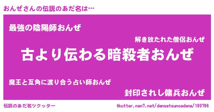 | 胡散臭い通販商品みたいなあだ名 | 『来世でも幸せになれる健康食品…その名も「おんぜ」』 |