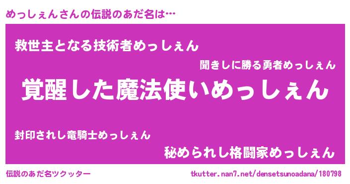 | ヒーロー風カッコイイあだ名 | 『炎刃騎士メッ』『天空の使者めっしぇん』 |