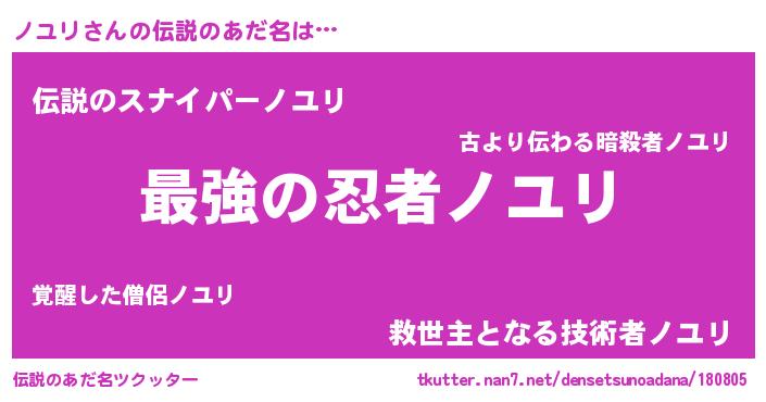 意味不明あだ名 | 『住所不定無職ノユリ(65歳)』『自称ノユリ』 |
