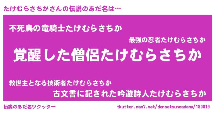 | 男性向けラノベタイトル風あだ名 | 『たけむらさちかの嫁は女の子じゃないと思った?』 |