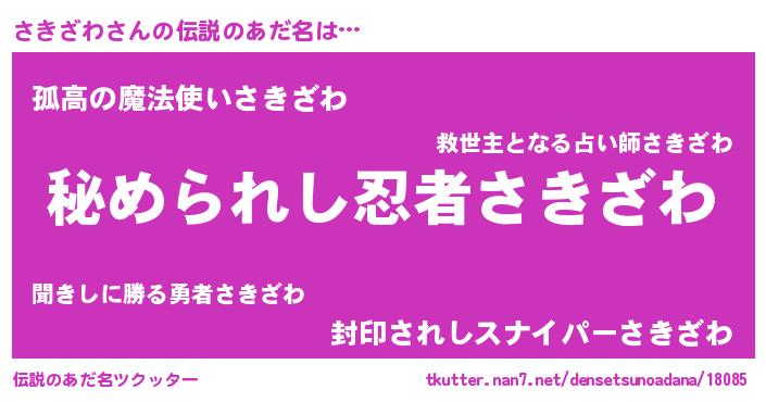 | ファンタジー風あだ名 | 『エターナルサキザワー』『ゼサキトゥ』 |