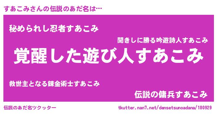 | ヒーロー風カッコイイあだ名 | 『最強戦士スアコミ』『仮面スアダー』 |