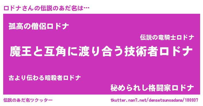 | ヒーロー風カッコイイあだ名 | 『最強戦士ロドナ』『友情の使者ロドナ』 |