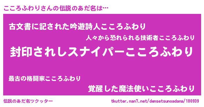| 胡散臭い通販商品みたいなあだ名 | 『億万長者になれる霊験あらたかなお札…その名も「こころふわり」』 |