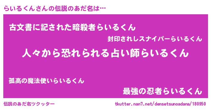 | ヒーロー風カッコイイあだ名 | 『友情の使者らいるくん』『仮面ライダー』 |