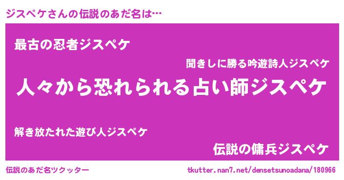 | ヒーロー風カッコイイあだ名 | 『正義の使者ジスペケ』『仮面ジスダー』 |