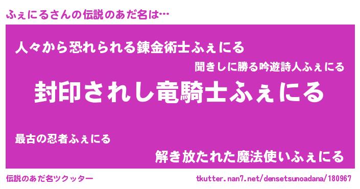 | 男性向けラノベタイトル風あだ名 | 『フェニルアートオンライン』 |