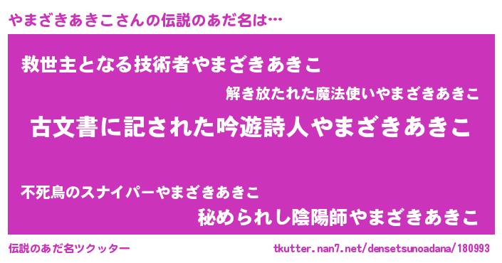 | 男性向けラノベタイトル風あだ名 | 『やまざきあきこに滅ぼされるだけの簡単なお仕事です』 |