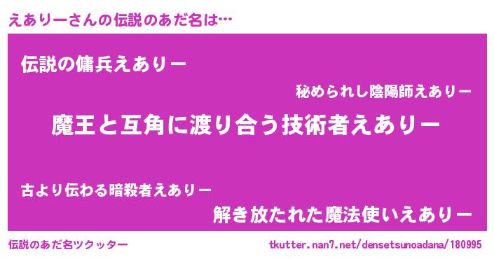 | 女子向けラノベタイトル風あだ名 | 『えありー恋絵巻』 |