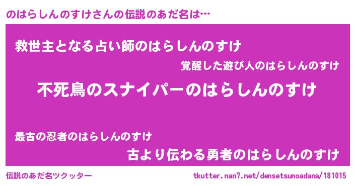 | ヒーロー風カッコイイあだ名 | 『スーパーノハラシンノスケ』 |
