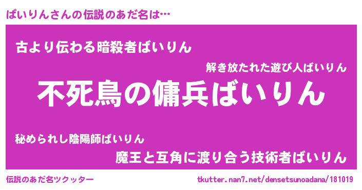 | 意味不明あだ名 | 『ペロリンばいりん』『永久保存ばいりん』 |