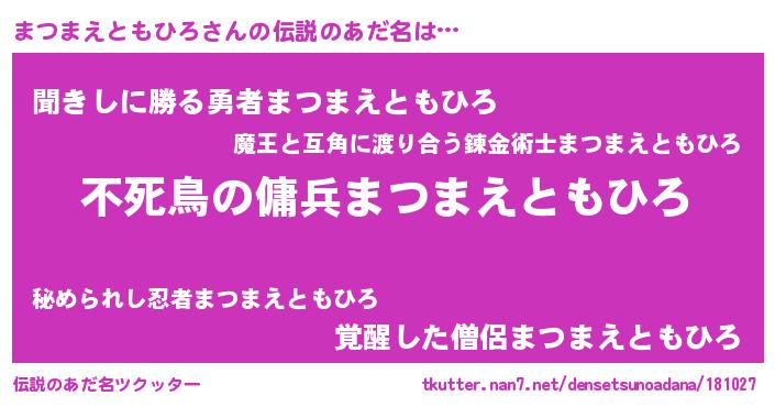 | 男性向けラノベタイトル風あだ名 | 『まつまえともひろの憂鬱』 |
