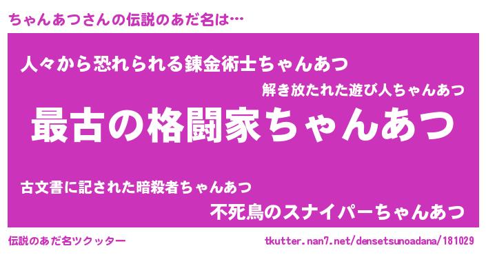 | ファンタジー風あだ名 | 『エターナルチャンアツー』『チャフェル』 |