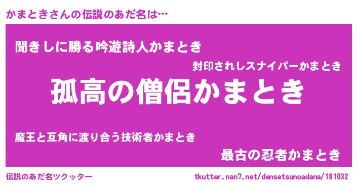| ヒーロー風カッコイイあだ名 | 『暗黒騎士カマ』『ネオカマトキ』 |