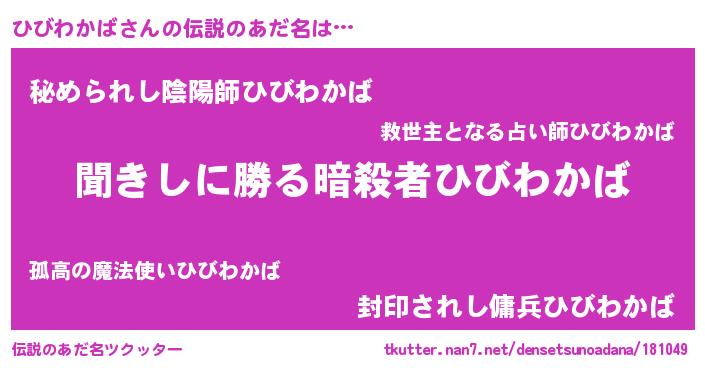 | 意味不明あだ名 | 『めかぶ科ひびわかば属』 |