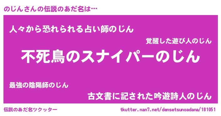 | 男性向けラノベタイトル風あだ名 | 『のじんの憂鬱』『魔法科高校ののじん』 |