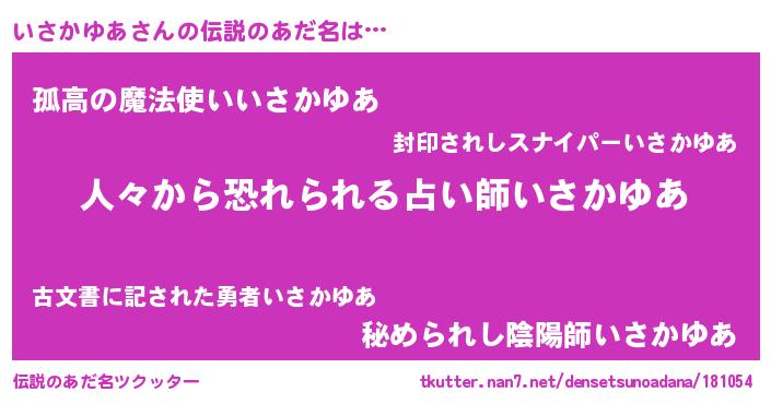 男性向けラノベタイトル風あだ名 | 『魔法科高校のいさかゆあ』 |