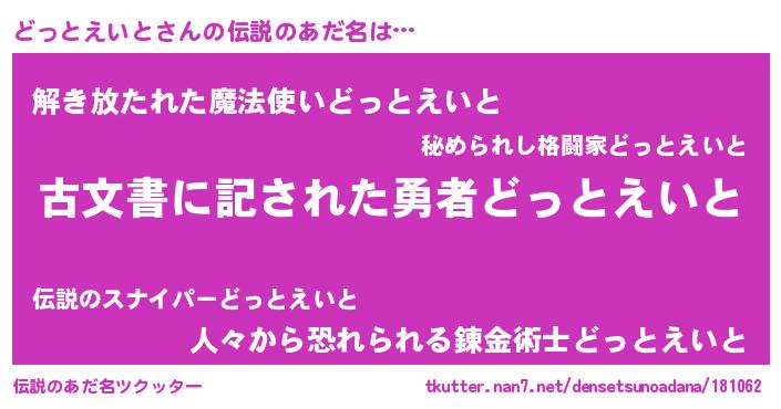 | ヘコむあだ名 | 『どっとえいと(震え声)』『どっお』 |