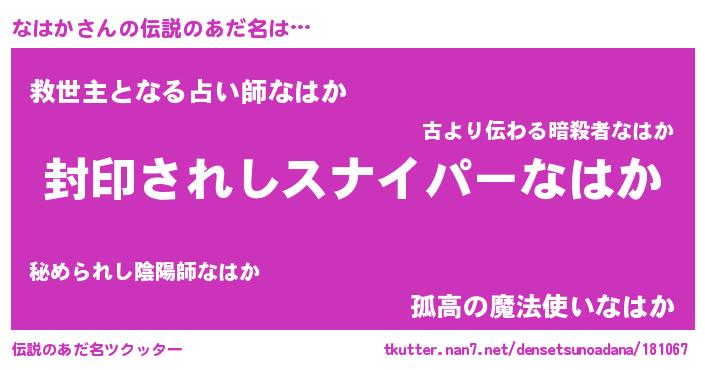 | ヘコむあだ名 | 『なはっふぃ~』『なはっ子』 |