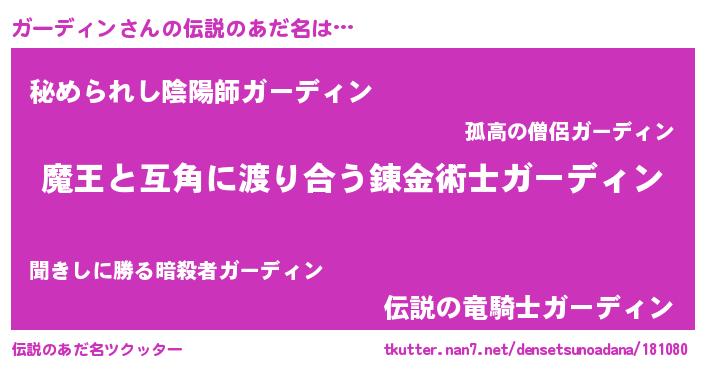 | ヒーロー風カッコイイあだ名 | 『友情の使者ガーディン』『幻影騎士ガー』 |