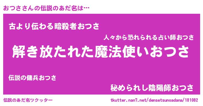 | 胡散臭い通販商品みたいなあだ名 | 『世界中を虜にした100年もののヴィンテージワイン…その名も「おつさ」』 |